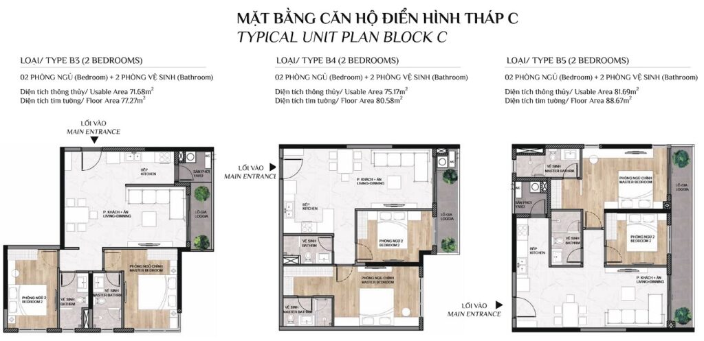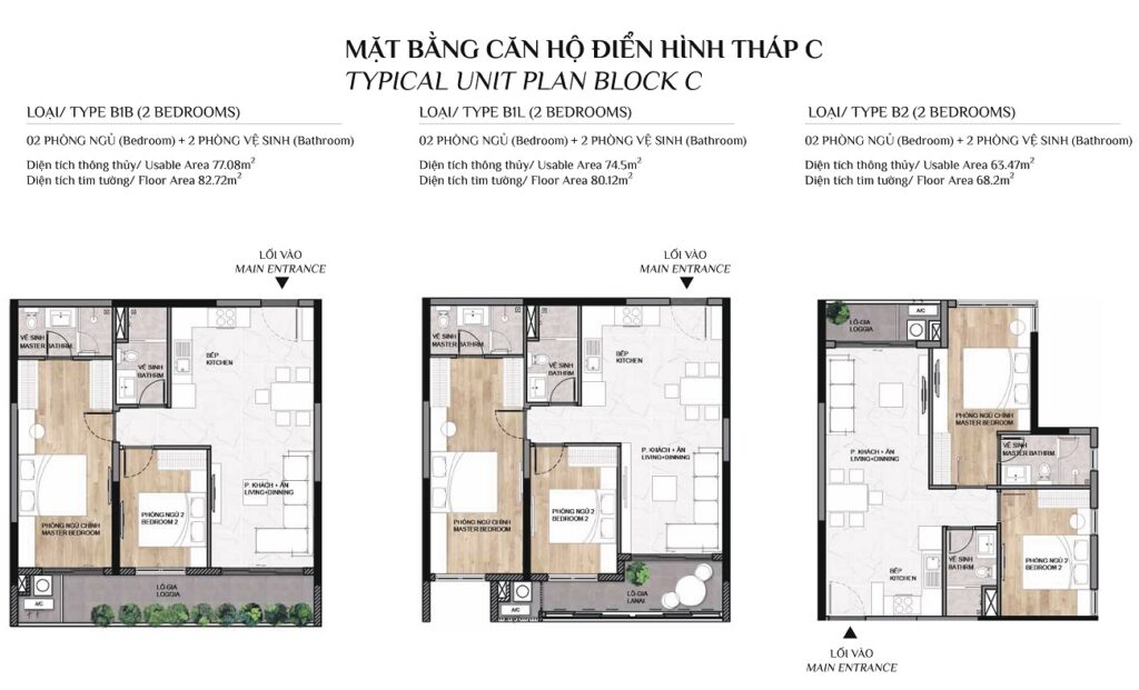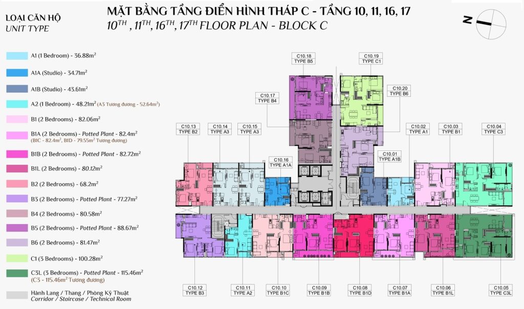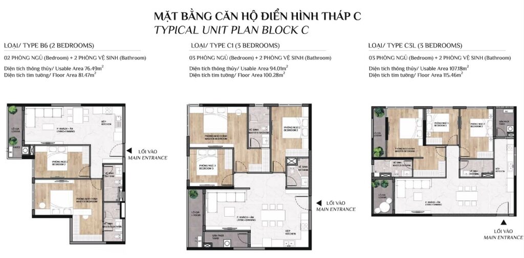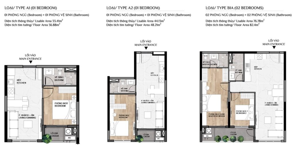 Căn hộ studio, 1PN, 2PN, 3PN, Penthouse.