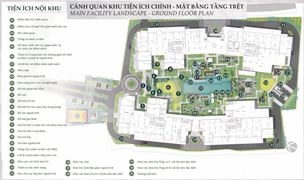 65% diện tích là cảnh quan, đường xá và hệ thống tiện ích.