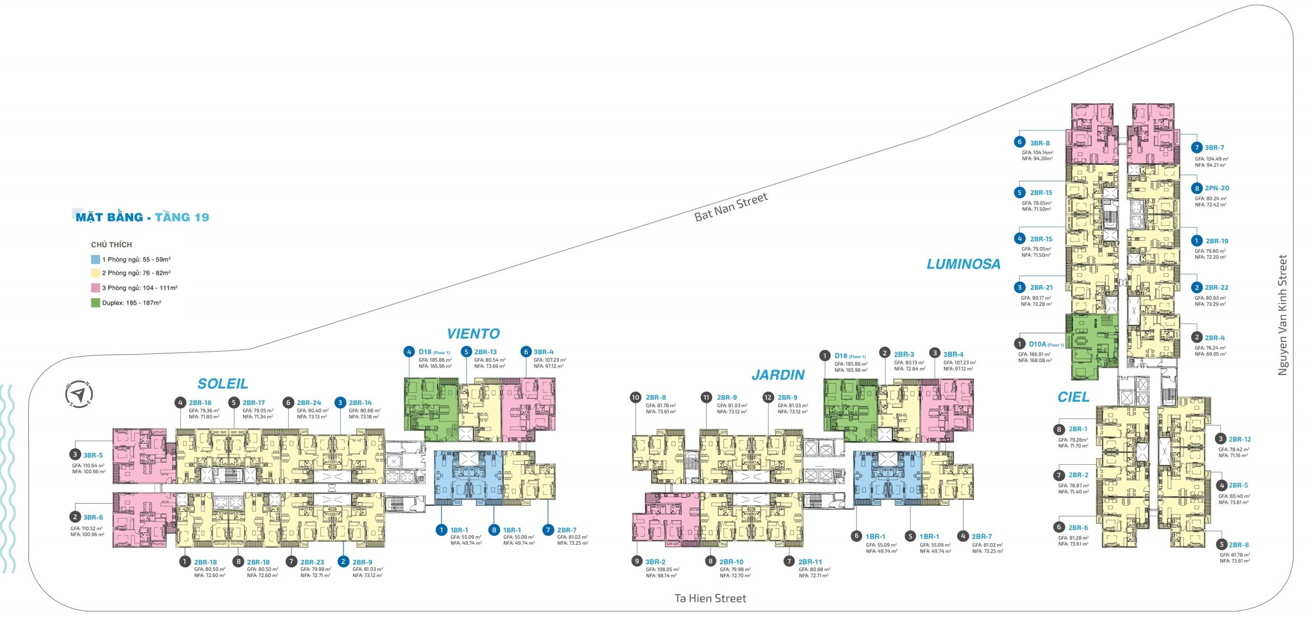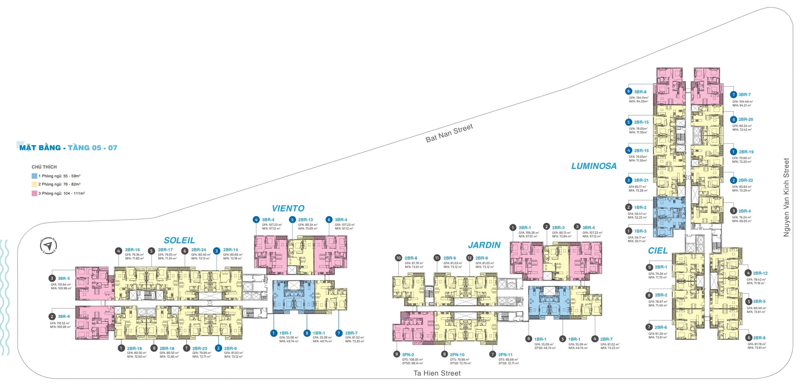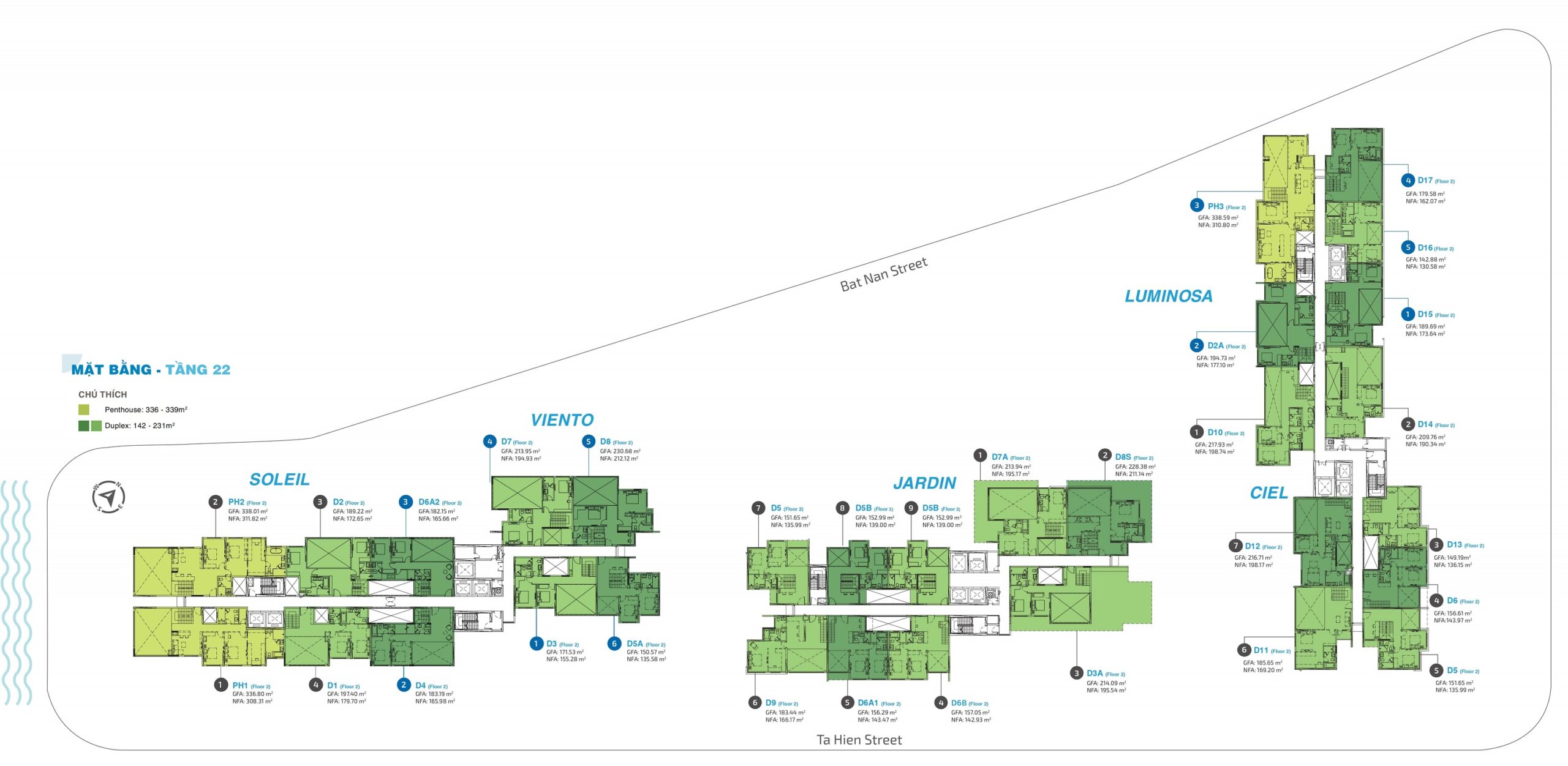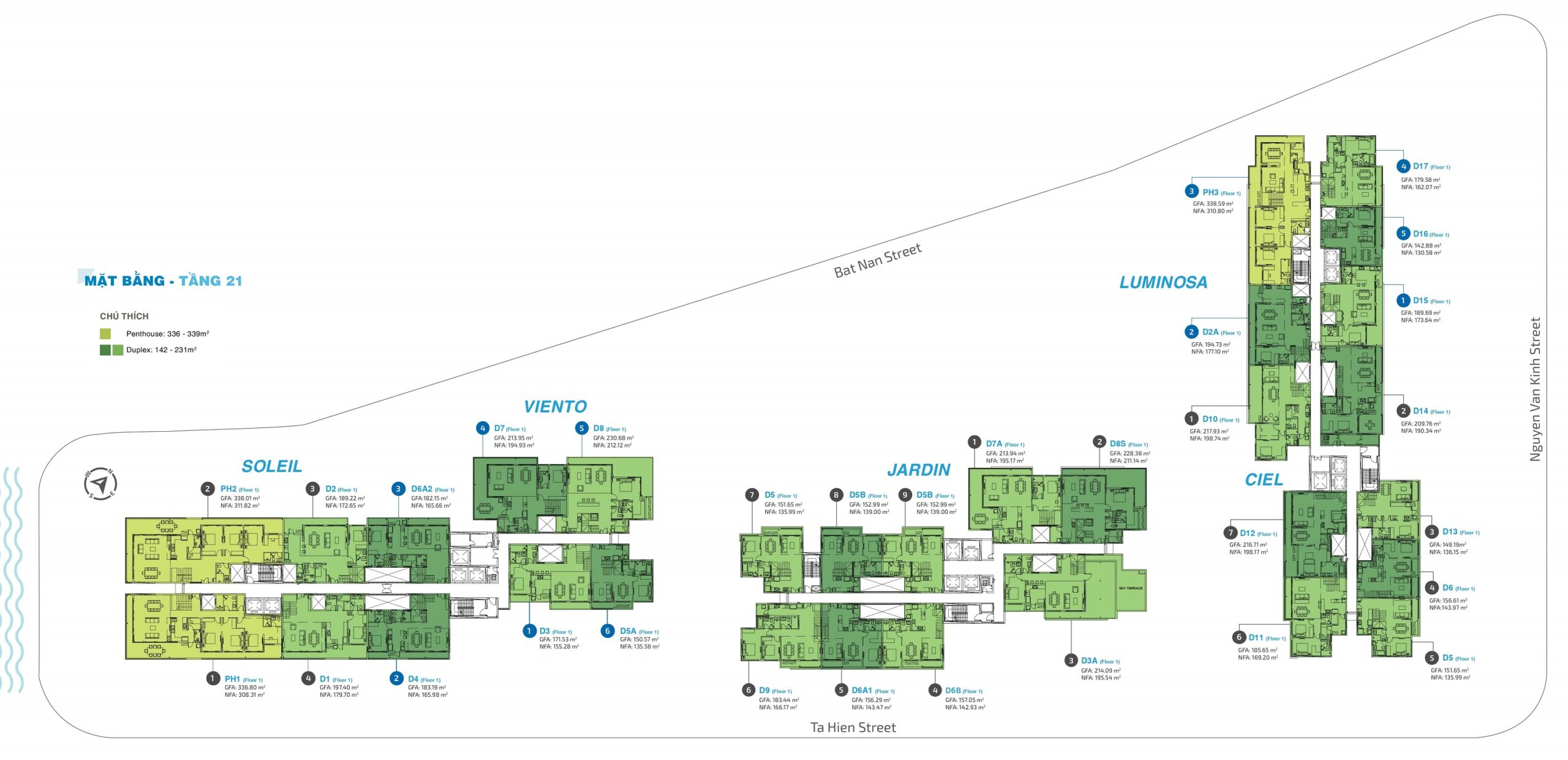 - Số block: 5 tháp gồm: Lumina, Ciel, Jardin, Viento, Soleil.