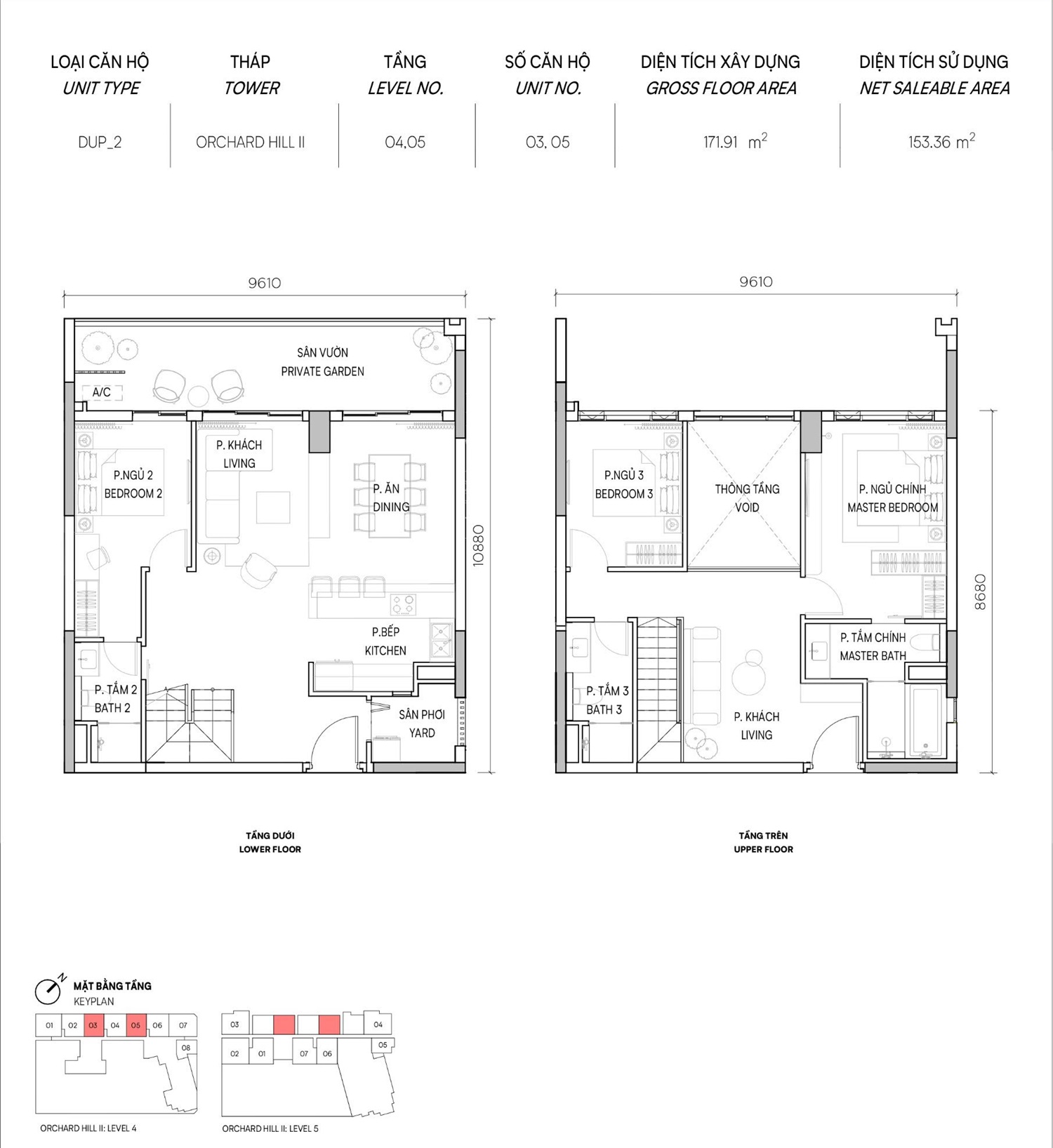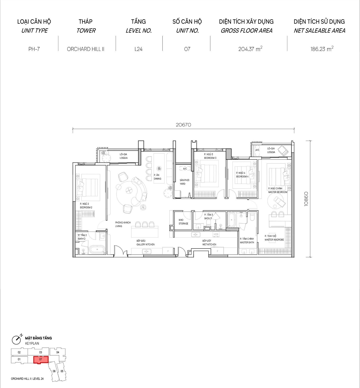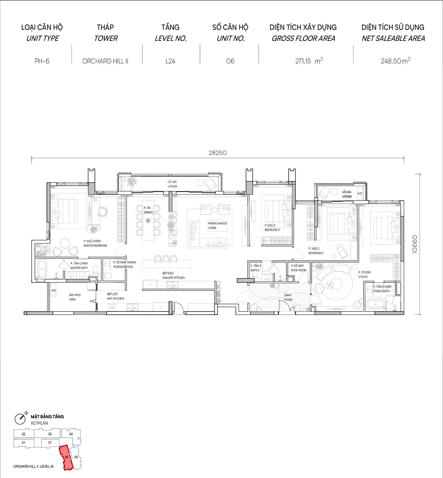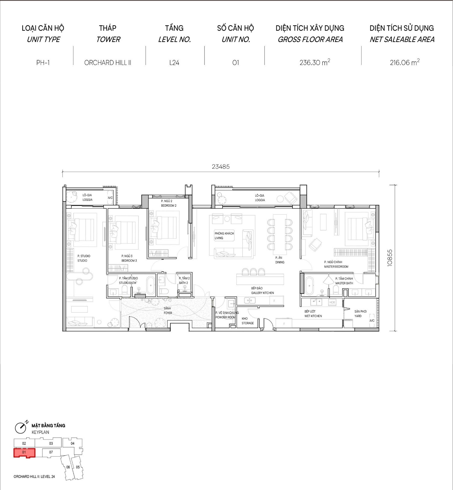 - Diện tích căn điển hình: 1PN 56-60m2, 2PN 82-91m2, 3PN 101-112m2, Duplex 154-178m2 (số lượng rất ít), Penthouse 186-286m2 (7 căn)