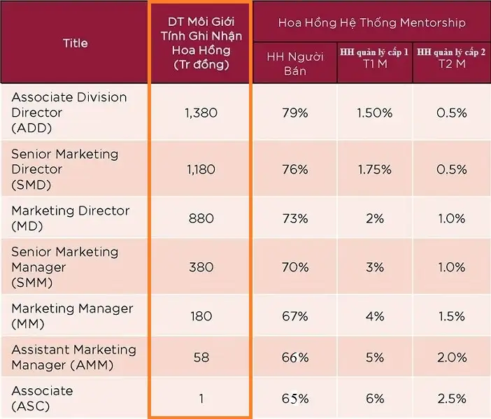 - Doanh số ghi nhậm mức hoa hồng được tích lũy, lũy tiến dựa trên doanh số CỘNG DỒN
