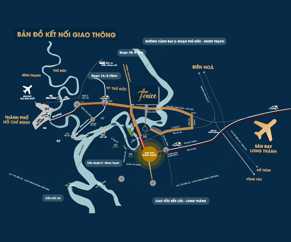 Fenice sở hữu vị trí cực đẹp tại tâm điểm đầu tư Nhơn Trạch. Từ Fenice, chỉ mất: