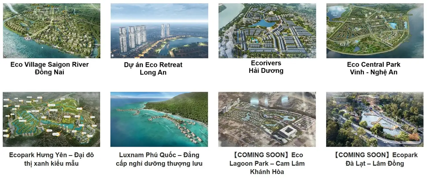 Ecopark không chỉ nổi bật với Chủ đầu tư dự án Eco Retreat Long An mà còn với nhiều dự án thành công khác. Dưới đây là một số dự án tiêu biểu